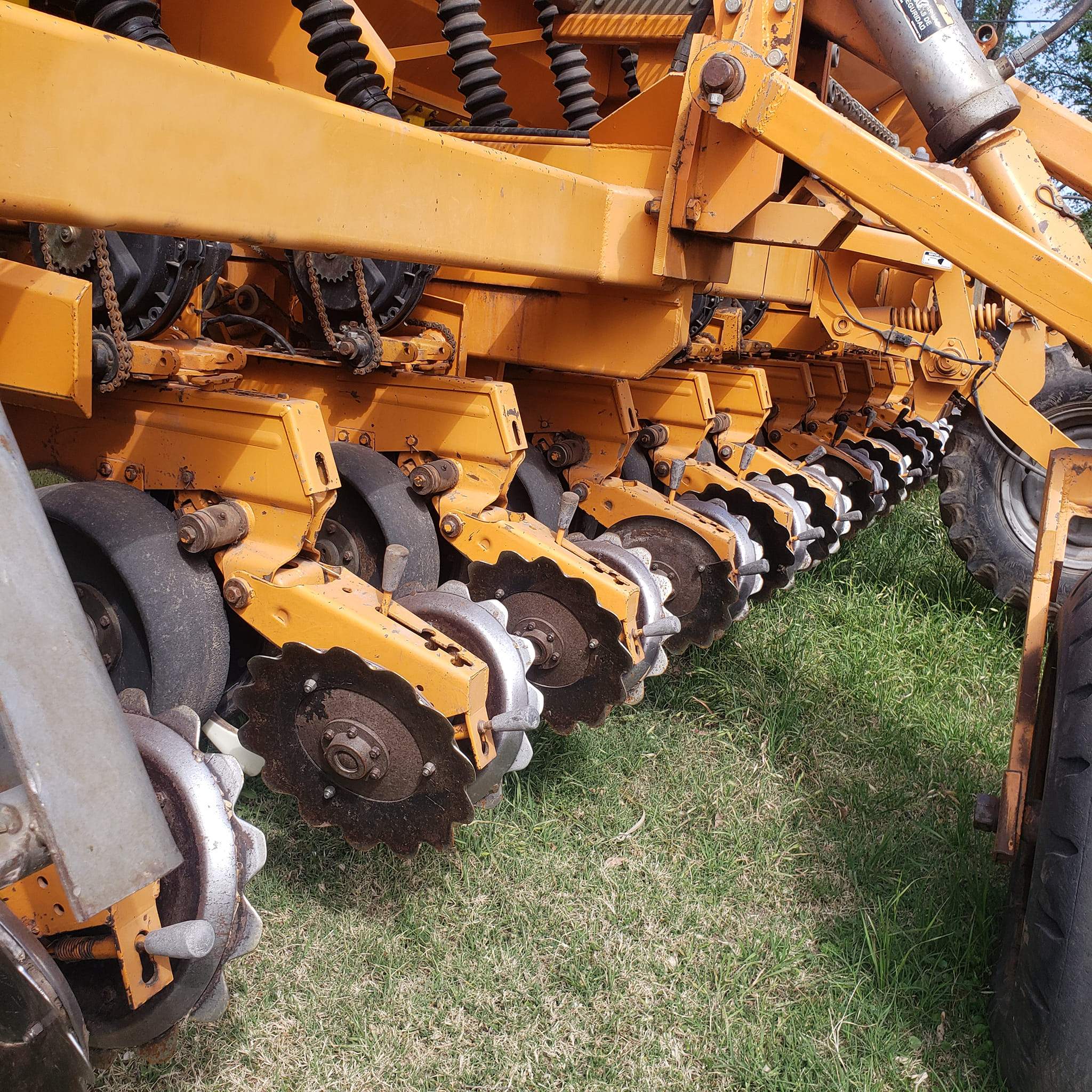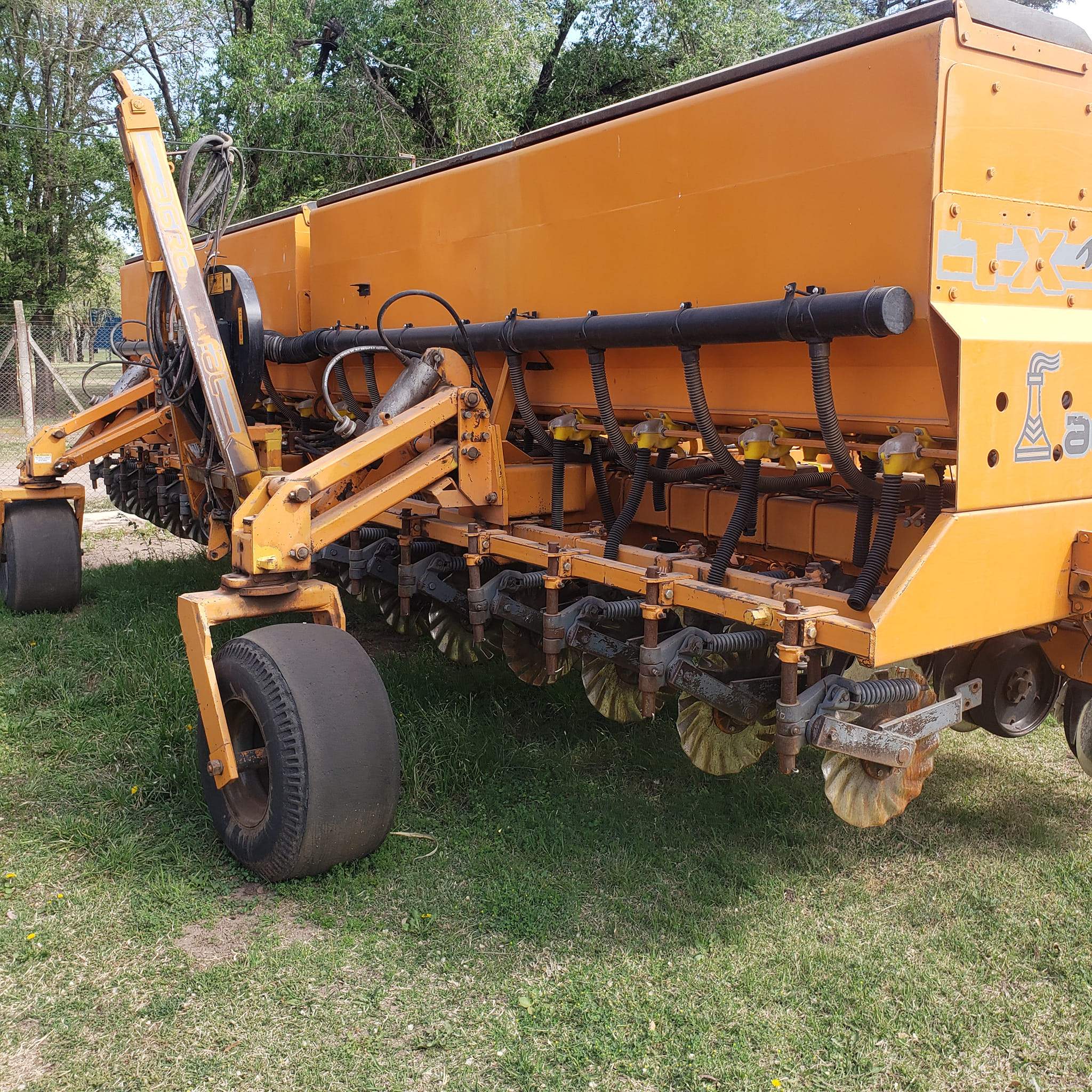 Agrometal TXN Mega 16 a 52 NEUMATICA. Año 2003. Dosificadores Matermac seminuevos. Doble fertilizacion con tolvas ampliadas y dosif externos. Cuch turbo con discos girat. Doble discos de fert, afirmadores, tapad trapez de acero con discos dent. Con Monitor.